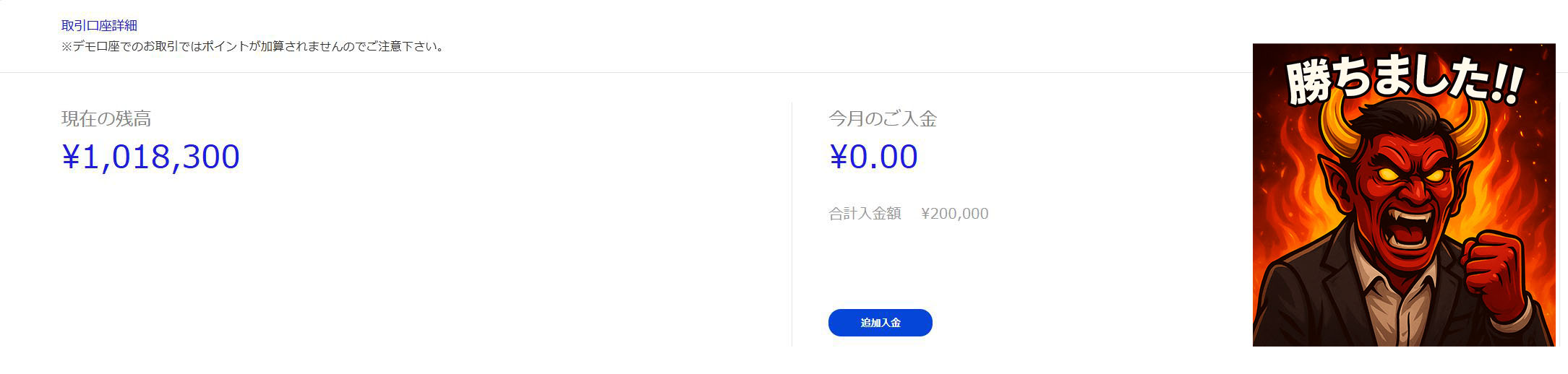 20万円でスタートした口座も、すでに1,018,300円となり月利409.15%を