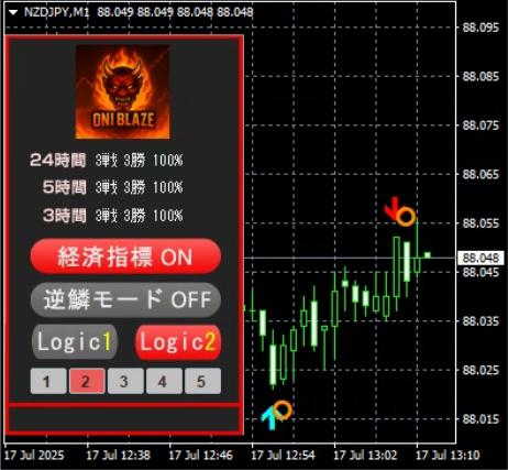プラスαのインジケータを追加して、自分流のONI BLAZEを作り上げていただくことも